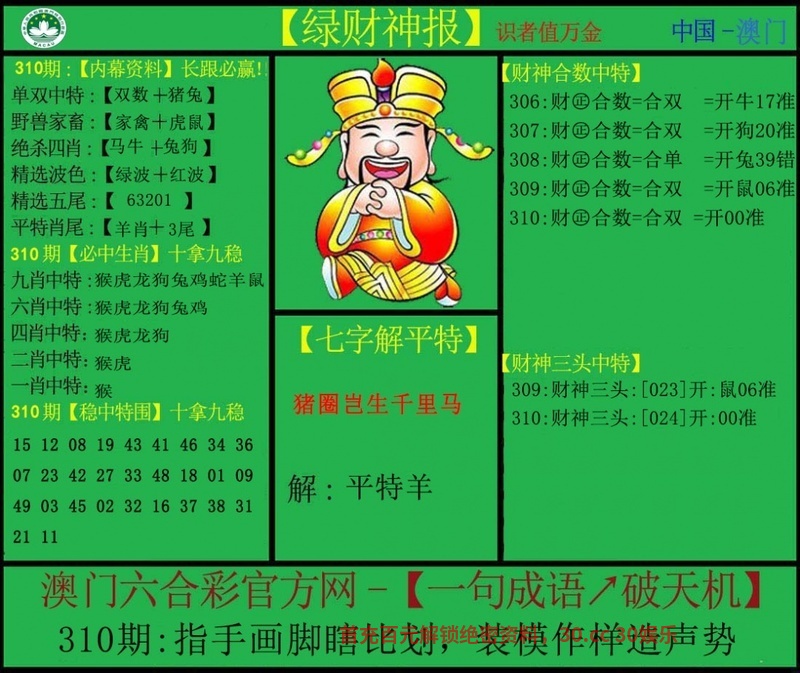 311期:初沫柒柒【平特★二肖】恭喜发财
